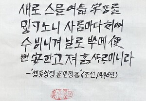 우리나라의 언문諺文 글자는 세종 28년 병인년에 처음 지었는데, 온갖 소리를 글자로 나타내지 못할 것이 없었다. 사람들은 이를 “창힐蒼頡과 태사太史 주籒 이후로 처음 있는 일”이라고 하였다. - 조선 실학자 이익(1681-1763)『성호사설』「언문」편 10월 9일- 내일은 제578돌 한글날이다. 한민족의 언어활동은 입말과 글말의 조화 속에 변천해 왔다. 세종대왕(1397-1450) 28년 1446년에 반포된 ‘훈민정음’은 당시 ‘어린 백성’들이 쓰던 ‘말’을 가장 쉽고, 정확하게 ‘글’로 표기할 수 있는 조선만의 문자 체계를 만든