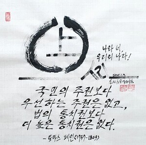 국민의 주권보다우선하는 주권은 없고,법의 통치권보다더 높은 통치권은 없다. - 토마스 페인 1959년 충북 영동 출생/ 서대전고. 충남대 국어국문학과, 고려대 교육대학원 국어교육 전공/ 대전MBC·TJB대전방송·STB상생방송 TV프로듀서(1987-2014)/ 동아일보신춘문예 동화 당선(1980). 제29·30회 대한민국서도대전 캘리그라피부문 특선(2023-2024): 제28회 입선(2022). 제19회 충청서도대전 캘리그라피 부문 입선(2022). 제20회 전국추사서예휘호대회 한문부문 입선(2020)/ 산문집『문화에게 길을 묻다』(