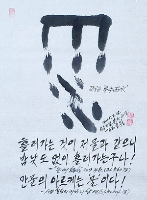 무엇인가가 떠나면 나는 떠나는 자가 될 것이다. 무엇인가가 자리 잡으면 나는 자리 잡는 자가 될 것이다. 그것은 마치 바다를 향해 흘러가는 이 강들이 바다에 이르러 잠기는 것과 같다. 그것들의 이름과 형태는 사라져 버린다. 바다라고 이렇게 일컫는다. - 『우파니샤드』4「쁘라스나 우파니샤드」부분울고불고 환호작약- 슬픔과 기쁨을 씨줄과 날줄 삼아 직조하는 사람 한 살이. 문득 절기를 살펴보니 내일, 23일이 서리가 내린다는 상강霜降입니다. 한 철에 6개씩 보름마다 갈마드는 24절기이니 이제 가을의 마지막 절후입니다. 그러니까 한 해의