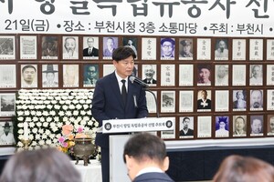 부천시가 21일 부천시청 소통마당에서 광복회 부천시지회 주관으로 '2025년 부천시 항일독립유공자 선열 추모제'를 엄숙히 거행했다. 이번 행사는 순국선열의 날을 기리고, 항일독립유공자들의 희생정신을 되새기기 위해 마련됐다.순국선열의 날은 국권 회복을 위해 헌신한 순국선열의 독립정신과 희생정신을 기리기 위해 1997년에 지정된 기념일로, 부천시는 매년 11월, 관내 지역 항일독립유공자와 유족이 함께하는 추모 행사를 이어오고 있다.추모제에는 조용익 부천시장을 비롯해 시의원, 인천보훈지청장, 유관기관장, 사회단체장, 보훈단체장, 국가유공