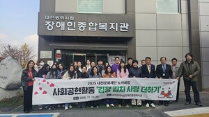 대전문화재단은 13일 노사화합 및 사회공헌활동의 하나로‘사랑의 김치 배달’을 진행했다고 밝혔다.‘사람의 김치 배달’은 지난 2020년부터 대전시립장애인복지관과 추진해온 사업으로, 대전시 출연기관으로서의 사회적 책임을 다하고자 지역 내 취약계층을 위한 나눔의 가치를 실천하기 위해 마련됐다.배달에 참여한 임직원 40여 명은 김치를 집집마다 배달하며 온기를 나눴다.백춘희 대표이사는 "지역사회에 따뜻한 온기를 전하는 사회공헌 활동에 지속적으로 앞장서겠다"며 "앞으로도 지역사회와의 상생을 위한 다양한 공공 프로그램을 기획하고, 사회적 가치