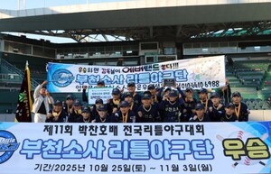 미래의 한국 야구를 이끌 꿈나무들의 축제, ‘제11회 박찬호배 전국리틀야구대회’가 10일간의 열전을 마치고 막을 내렸다. 결승전에서는 팽팽한 투수전 끝에 터진 극적인 만루 홈런 한 방이 경기 부천소사 리틀야구단에 우승 트로피를 안겼다.지난 3일 대전 한밭야구장에서 열린 대회 결승전에서 부천소사는 인천 남동구 리틀야구단을 4대 0으로 꺾고 정상에 올랐다. 전국 80개 팀이 참가해 지난 10월 25일부터 열띤 경쟁을 펼친 이번 대회는 야구 꿈나무들의 재능과 열정을 확인하는 무대가 됐다.이날 결승전은 5회초까지 양 팀 모두 득점 없이 0