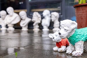 얘야,저기 고민하는 군상들 좀 보아라.몇천년 전부터 저러고 있단다.그러다 병들과 싸우다, 저희들끼리 싸우다 간신히 살아나또 저러곤하지. 우리야, 개팔자지!이제 오뉴월에만 개팔자가 아니야,일년내내 평생 보장이지.먹을 거 입을 거 다 외제지?개모차도 외제지?이제 단골 미용실,단골 식료품가게,단골 사진관도 있지?우리 전용 호텔도 있지?반려동물 여행이나 숙박 투어도 생겼지?이제 단골 화장장에 장례사까지 있어.장례도 걱정 없단다! 근데네 모자와 선그라스는 어쨌니?
