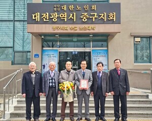 대전 중구는 (사)대한노인회 대전중구지회 이인상 지회장이 지난 2월 26일 서울 백범김구기념관에서 열린 대한노인회 정기총회에서 '2024년 우수지회장'으로 선정됐다고 밝혔다.이인상 지회장은 노인 복지 향상에 기여한 공로를 인정받아 수상의 영예를 안았다.대한노인회 대전중구지회는 1981년 발족 이후 관내 146개 경로당 8천여 명의 회원을 중심으로 어르신들의 권익 증진과 복지 향상을 위해 노력해왔다. 특히, 회원 간 화합을 도모하고 분쟁 없는 경로당을 조성하는 데 앞장섰으며, 노인대학 및 시니어 리더십 프로그램 운영 등 평생 교육 기