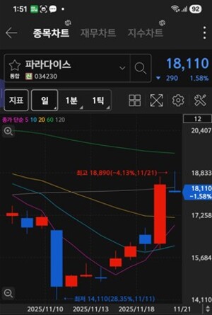 21일 오후 장에서 기관 투자자들이 카지노, 여행, 면세 등 '관광·레저' 관련주를 집중적으로 사들이고 있다. 반면 국내 증시 대장주인 삼성전자는 외국인과 기관의 동반 매도세에 시달리고 있는 것으로 나타났다.이날 오후 1시 26분 키움증권의 장중 투자자별 매매 상위 집계에 따르면, 기관 투자자의 순매수 상위권은 '관광' 테마가 휩쓸었다. 순매수 1위 파라다이스를 필두로 롯데관광개발(2위), 글로벌텍스프리(3위), 서부T&D(4위)가 나란히 상위 1~4위를 차지했다. 연말 여행 성수기와 외국인 관광객 증가에 따른 실적 개선 기대감이