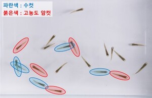수컷 송사리가 시각이 아닌 성호르몬을 감지해 짝짓기 상대를 선택하는 독특한 행동이 국내 연구진에 의해 처음으로 확인됐다.환경부 소속 국립생물자원관은 이번 연구 결과가 송사리의 번식 비밀을 풀었을 뿐만 아니라, 환경호르몬이 수생태계에 미치는 위험성을 시사하는 중요한 과학적 근거가 될 것이라고 23일 밝혔다.이는 눈이 크고 시력이 좋은 송사리가 짝짓기 과정에서 화학적 신호인 호르몬에 의존한다는 이례적인 현상을 보여준다. 일반적으로 대부분의 어류는 화려한 색이나 구애춤 등 시각 정보로 짝을 고르며, 호르몬 신호는 시력이 퇴화한 일부 어종