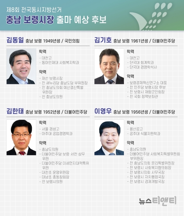 2022년 6.1 지방선거를 정확히 260일 앞두고 충남 보령시장 출마 예상자로 자천타천 거론되는 인사들은 4명 정도로 알려졌다.