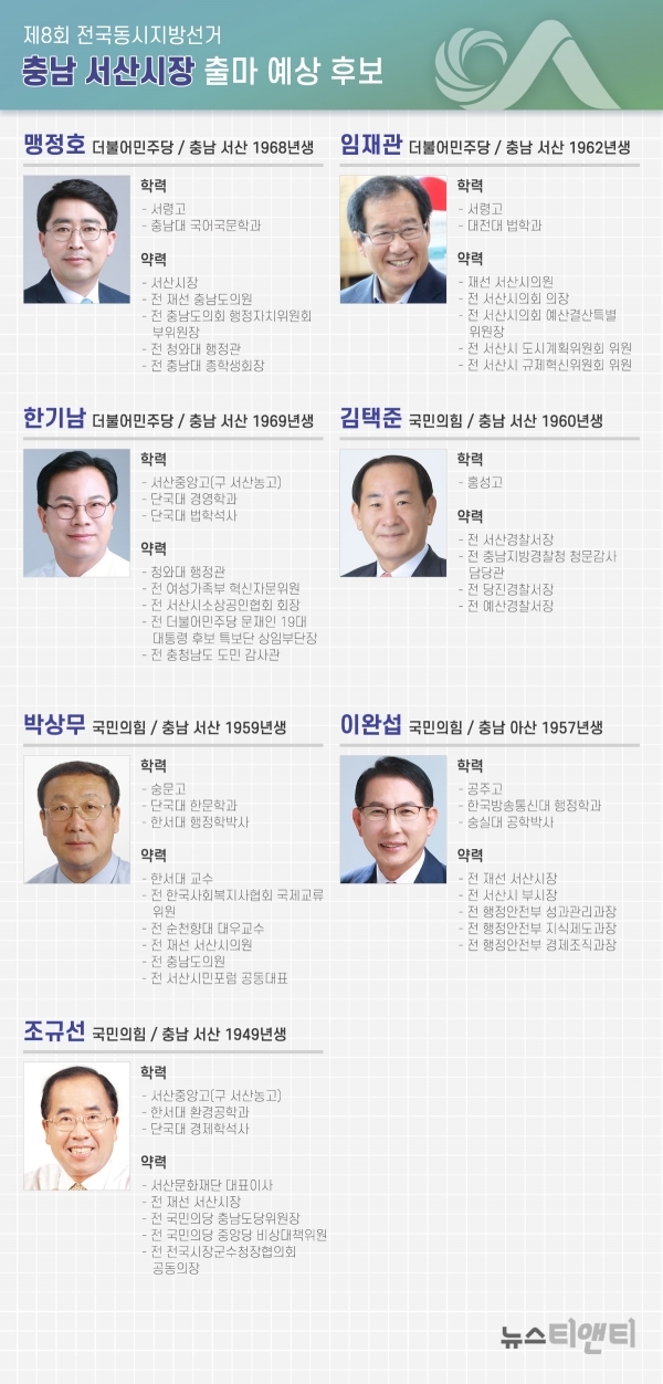 2022년 6.1 지방선거를 정확히 211일 앞두고 충남 서산시장 출마 예상자로 자천타천 거론되는 인사들은 7명 정도로 알려졌다.