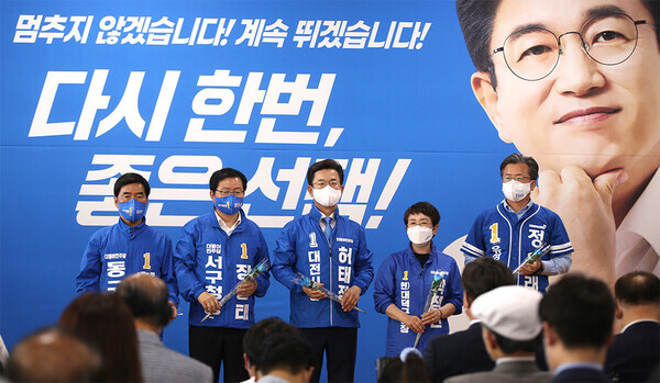 또한 더불어민주당 송영길 서울시장 후보와 박남춘 인천시장 후보는 영상으로 허태정 후보의 승리를 기원했다.