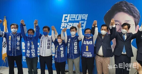 이날 개소식에는 박영순 대전시당위원장과 장철민 국회의원을 비롯해 허태정 대전시장 후보, 황인호 동구청장 후보, 김경훈 중구청장 후보, 장종태 서구청장 후보, 정용래 유성구청장 후보 등이 참석했다.
