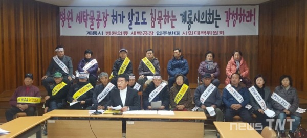 이용권 시민대책위원장은 이날 "계룡시는 천혜의 자연경관과 오염되지 않은 환경을 자부심으로 삼고 있다. 이는 우리 후손을 위해 보존해야 할 무한의 가치"라며 "의료세탁물공장 유치는 시의 질서와 안녕을 깨트리는 행정"이라고 말했다.