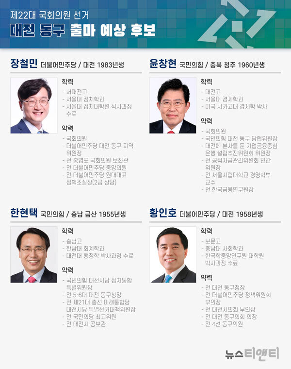 22대 총선을 365일 앞두고 대전의 본류를 자부하는 동구의 국회의원 후보로 자천타천 거론되는 인물은 4명 정도로 알려졌다.