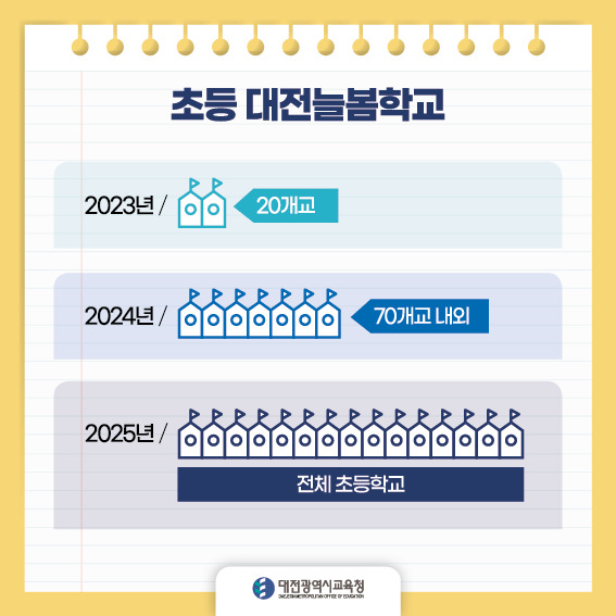 초등 대전늘봄학교 : 2023년 20교 → 2024년 70교 내외 → 2025년 전체 초등학교로 확대