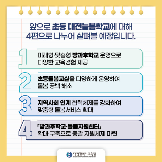 앞으로 초등 대전늘봄학교에 대해 4편으로 나누어 살펴볼 예정입니다.