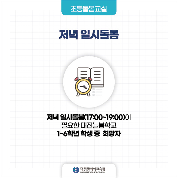 - 저녁 일시돌봄(17:00~19:00)이 필요한 대전늘봄학교 1~6학년 학생