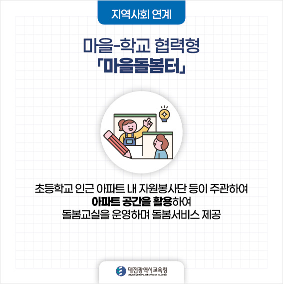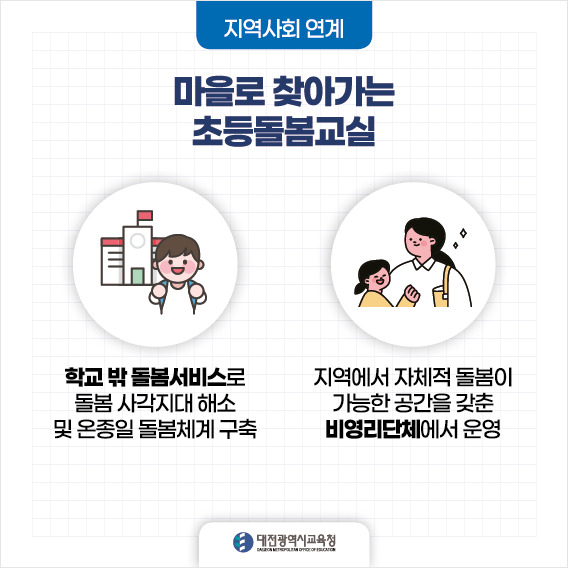 - 학교 밖 돌봄서비스로 돌봄 사각지대 해소 및 온종일 돌봄체계 구축