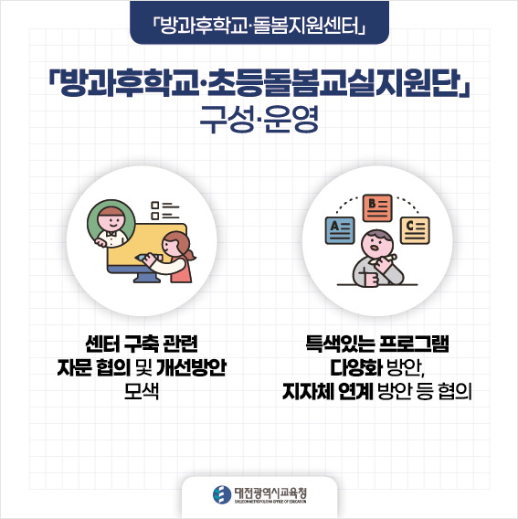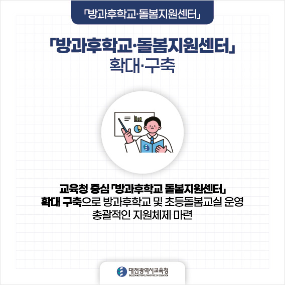 '방과후학교·돌봄지원센터' 확대·구축으로 총괄적인 지원체제를 마련하겠습니다.