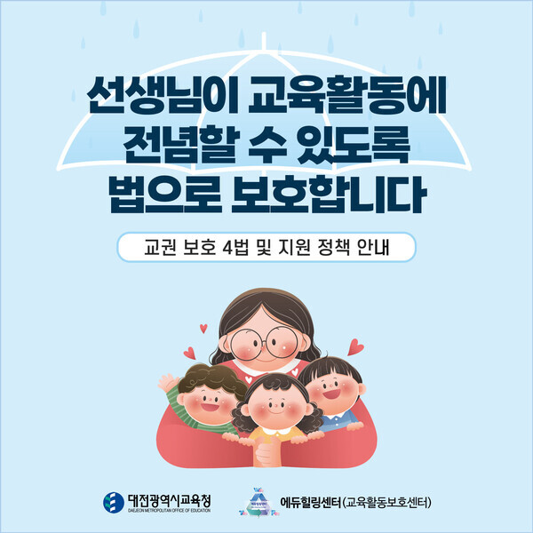 선생님이 교육활동에 전념할 수 있도록 법으로 보호합니다.