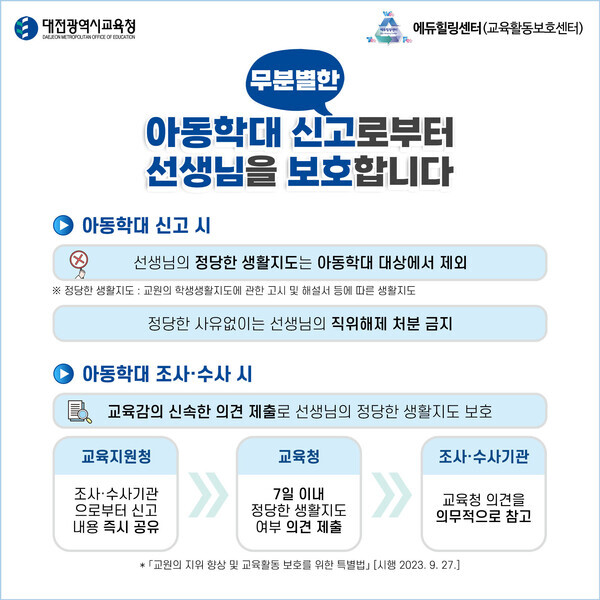 무분별한 아동학대 신고로부터 선생님을 보호합니다.