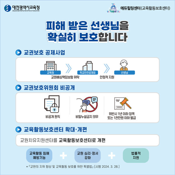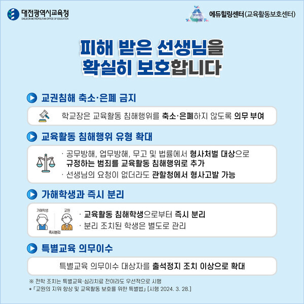 피해 받은 선생님을 확실히 보호합니다