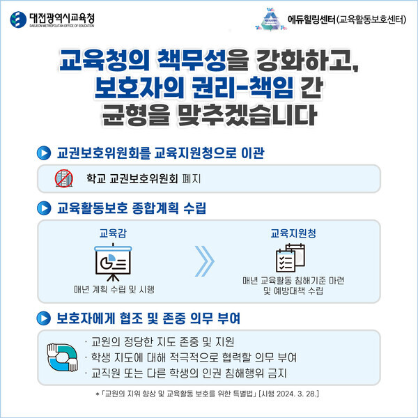 * 「교원의 지위 향상 및 교육활동 보호를 위한 특별법」 [시행 2024. 3. 28.]