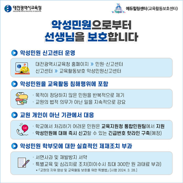 악성민원으로부터 선생님을 보호합니다.