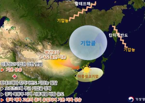 이동성고기압권 강한 햇볕과 중국 대륙의 더운 공기 유입되며 기온 크게 올라