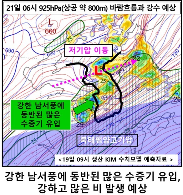 20~21일 사이 전국에 강하고 많은 비