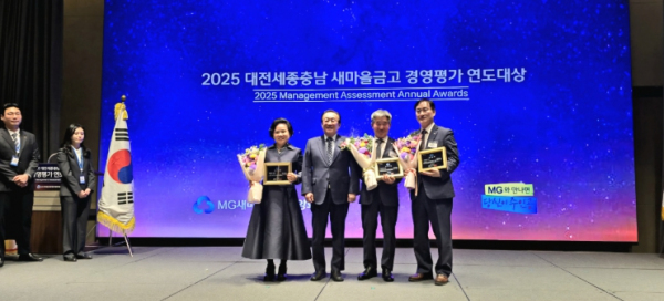 지난 4일 대전 롯데시티호텔에서 열린 전국 1,276개 새마을금고를 대상으로 한 경영평가 연도대상 시상식에서 경영우수, 혁신경영, 조직문화, 상생발전 4개 부문 중 경영우수 부문 우수금고로 선정됐다.