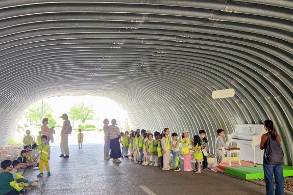 세종특별자치시 어진동이 오는 11월 30일까지 어진동 607번지 일원 한뜰마을 3단지에서 호수공원으로 이어지는 지하터널에 ‘호수 위의 피아노’를 설치·운영한다.