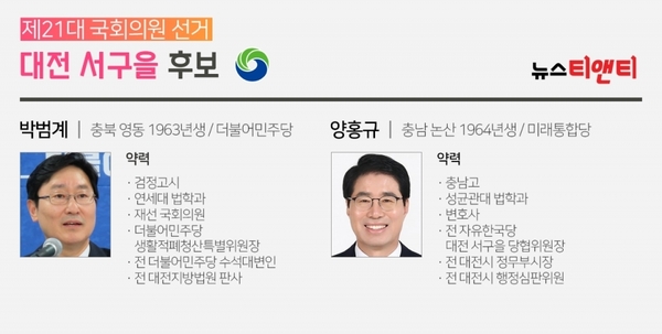 대전 서을은 신흥 정치1번지로 통하며, 대전의 주요 관공서가 밀집돼 있어 오피니언 리더들의 표심이 많은 영향을 주는 지역이다. 지난 1996년 15대 총선부터 분구된 대전 서을은 故 구논회 의원의 사망으로 치러진 보궐선거까지 총 일곱 차례의 선거에서 보수진영 vs 진보진영이 4 對 3의 승률을 기록하며, 각축을 벌이고 있으나, 지난 2012년 19대 총선부터 보수진영의 분열을 틈타 진보진영의 박범계 의원이 두 차례 연속 당선되며 객토에 성공한 지역으로 평가를 받고 있다. 이번 21대 총선에서는 연배가 비슷한 律師(율사)들의 대결로 주목을 받고 있는 대전 서을은 더불어민주당의 국정안정 기조에 미래통합당이 정권 심판론을 내세우고 있어 유권자들의 표심이 어디로 향할지도 관전 포인트다.