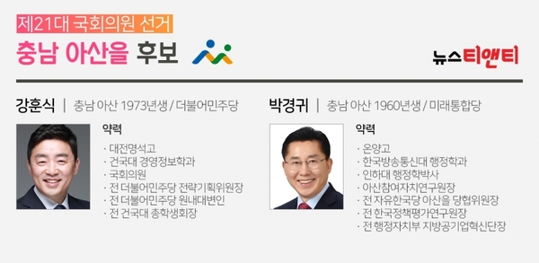 - [격전 4.15 충남 아산갑] "3선 관록의 정책전문가냐, 재선 시장 출신의 집권여당 후보냐"