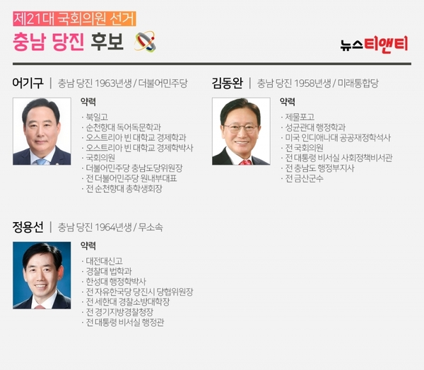 더불어민주당 어기구 의원 vs 미래통합당 김동완 후보 vs 무소속 정용선 후보