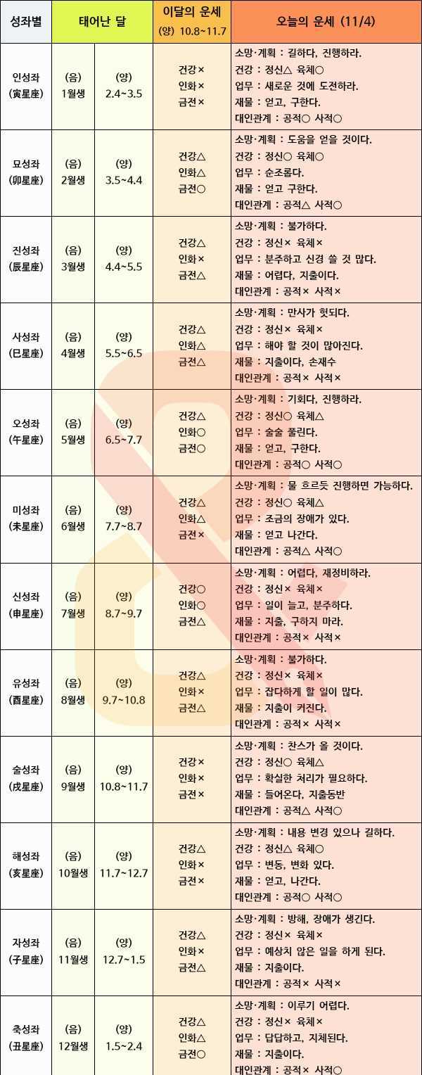 태어난 달로 풀이하는 오늘의 운세 · 이달의 운세