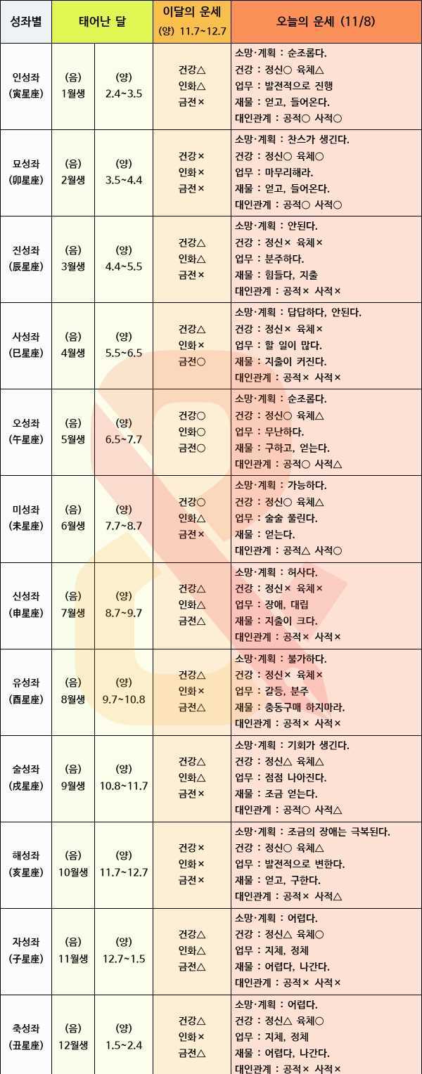 태어난 달로 풀이하는 오늘의 운세 · 이달의 운세