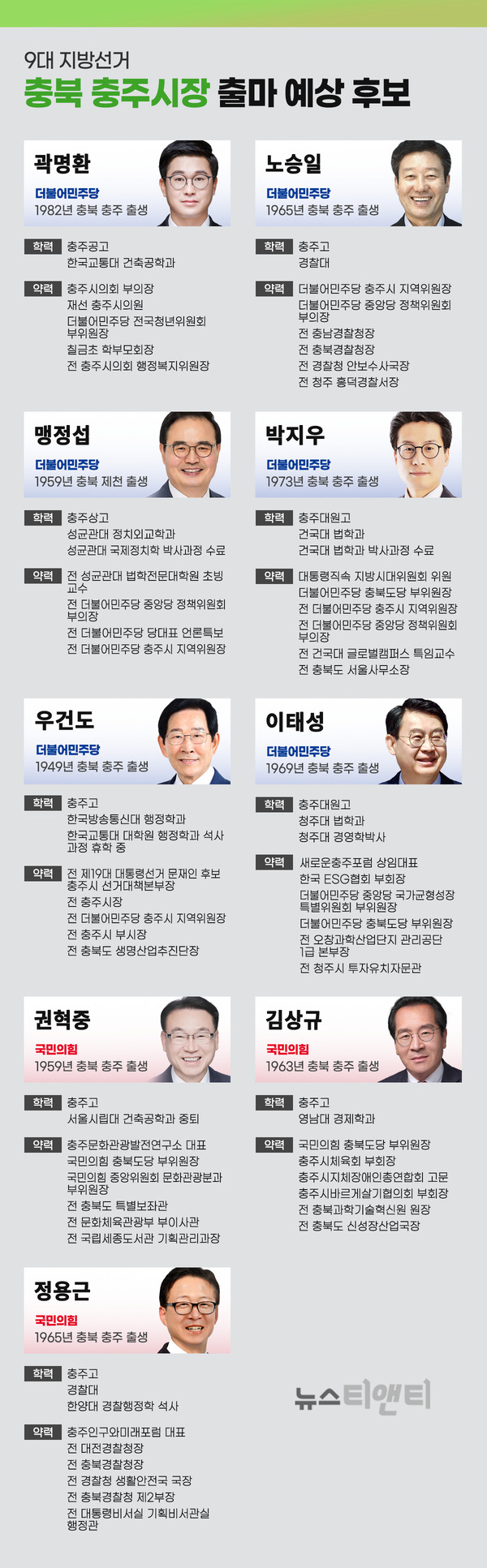 2026년 6.3 지방선거를 정확히 202일 앞두고 충북 제2의 도시 충주시장 출마 예상자로 자천타천 거론되는 인사들은 9명 정도로 알려졌다.