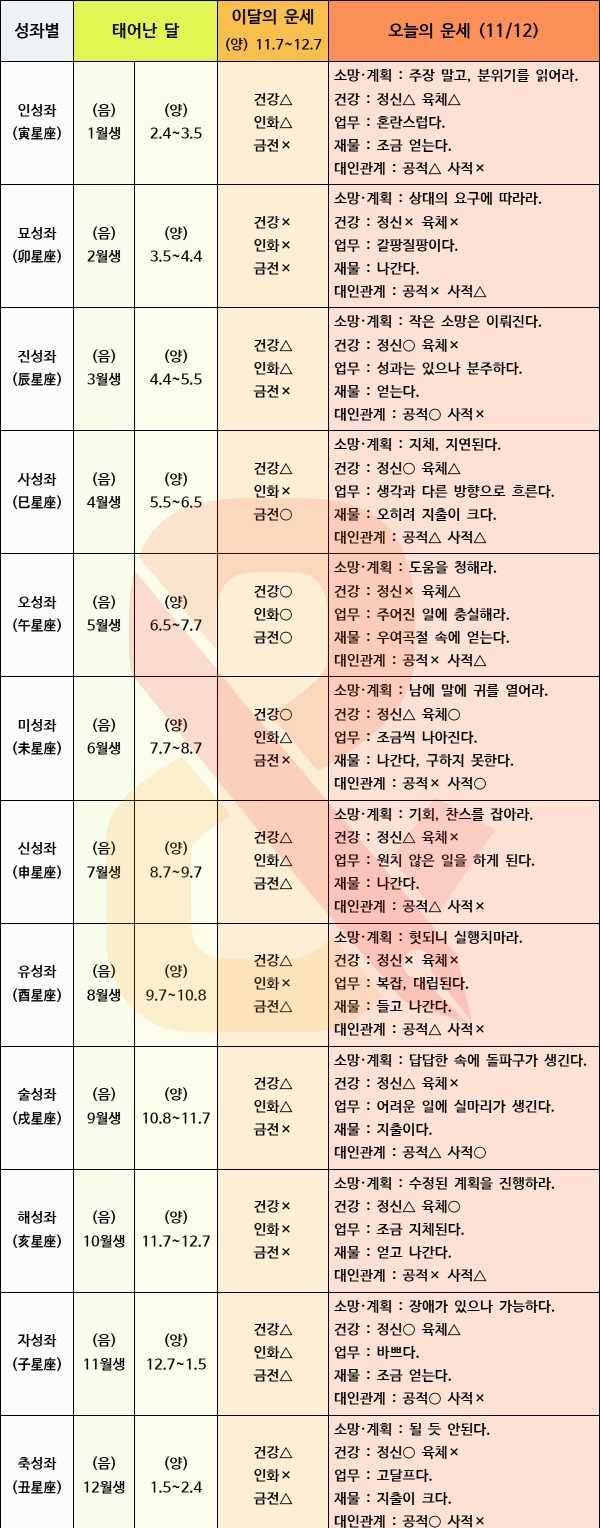 태어난 달로 풀이하는 오늘의 운세 · 이달의 운세