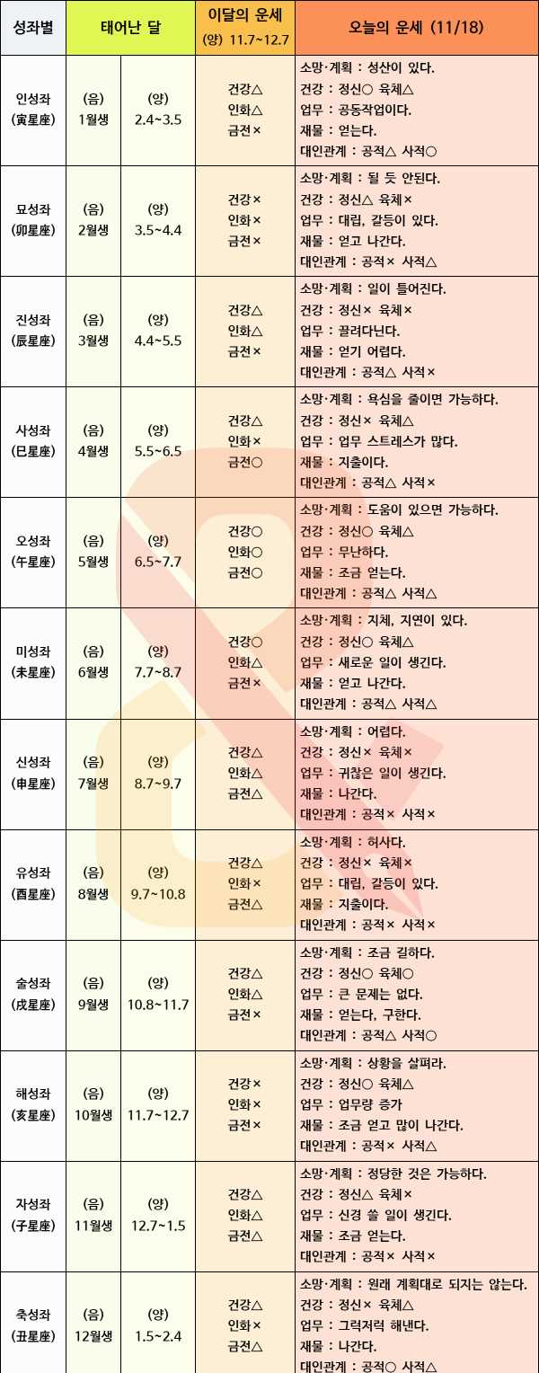 태어난 달로 풀이하는 오늘의 운세 · 이달의 운세