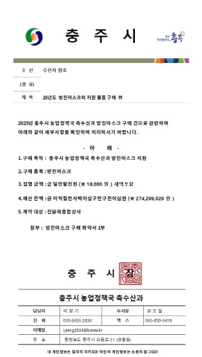 충북 충주시가 최근 지역 내에서 연이어 발생한 방진마스크 및 방역복 대리구매 사기 시도 사건과 관련해 시민들에게 각별한 주의를 당부했다.