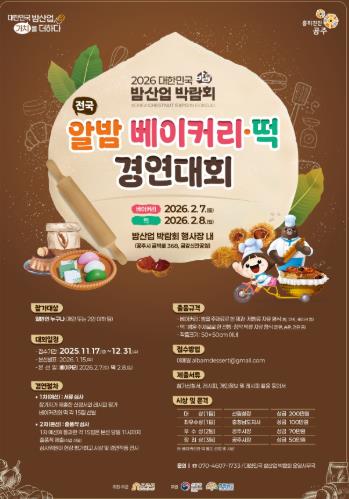 공주시는 내년 2월 열리는 ‘2026 대한민국 밤산업 박람회’의 일환으로 ‘전국 알밤 베이커리·떡 경연대회’를 개최하고, 오는 12월 31일까지 참가자를 모집한다고 밝혔다.