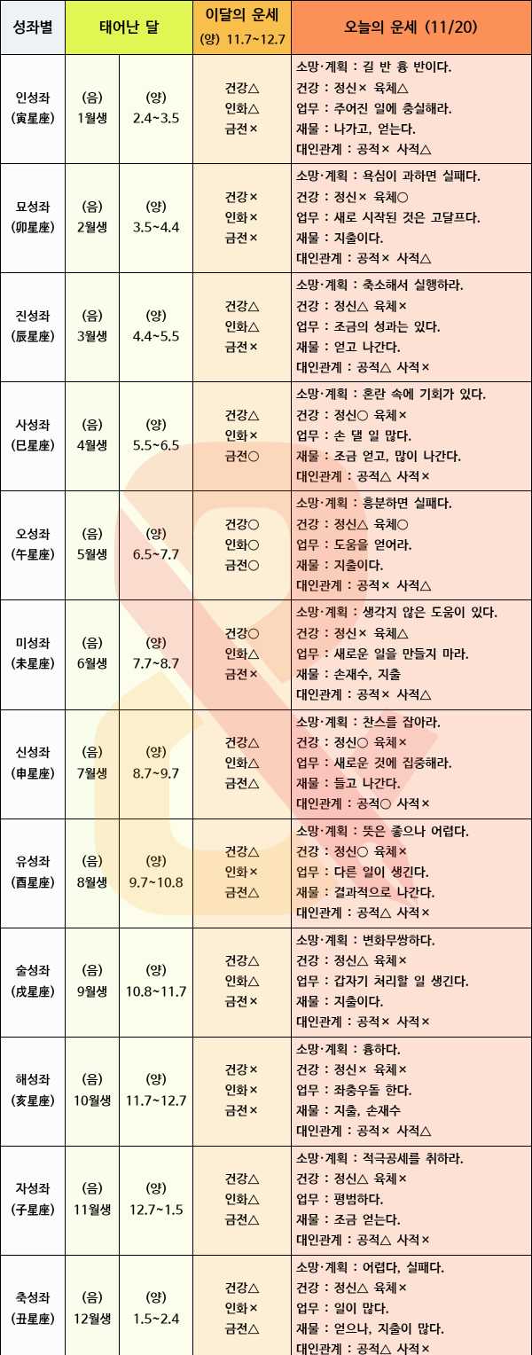 태어난 달로 풀이하는 오늘의 운세 · 이달의 운세