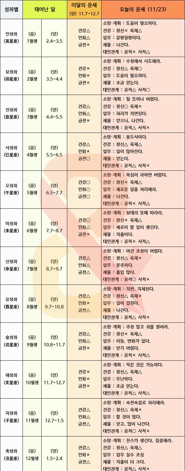 태어난 달로 풀이하는 오늘의 운세 · 이달의 운세