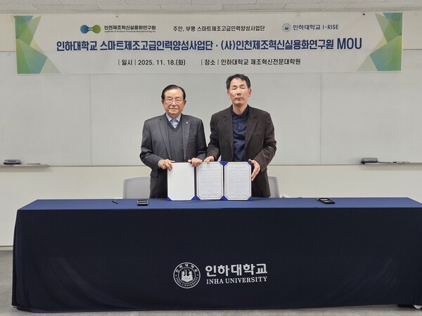 인하대학교 주안·부평 스마트제조 고급인력 양성사업단과 사단법인 인천제조혁신실용화연구원은 18일 인천지역 산업단지의 산학협력 클러스터 활성화를 위해 업무협약(MOU)을 체결했다.