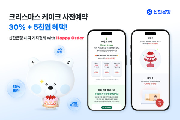 신한은행은 11월 20일부터 12월 21일까지 해피오더 앱 입점 브랜드의 크리스마스 케이크를 사전예약하는 고객을 대상으로 할인 이벤트를 실시한다.